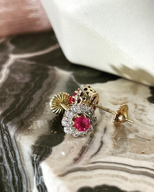 14K Yellow Gold Vintage Diamond Earrings