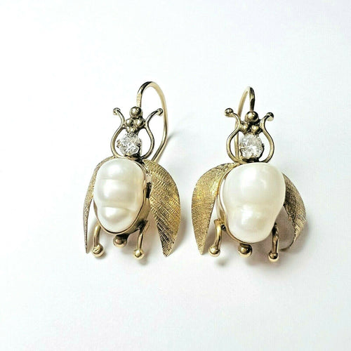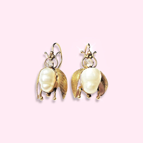 Old Mine Cut Diamond Fresh Water Pear BEE Fly Earring 1"