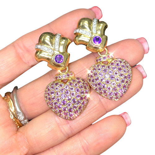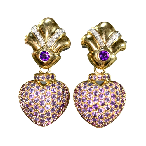 Amethyst Pave and Diamond Drop Earrings 14K Yellow Gold