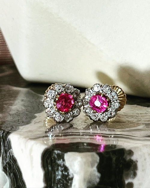 Antique Victorian Old Mine Cut Diamond Halo Earrings 18K Gold