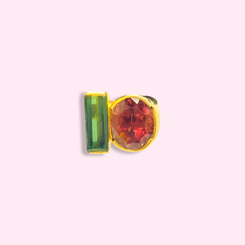 Amazing Large Green and Pink Tourmaline 14K Yellow Gold Ring 14K Yellow Gold Siz