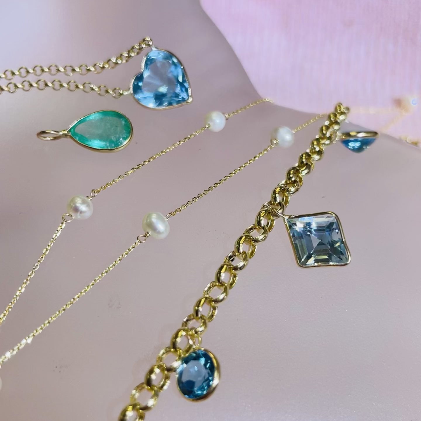 Blue Topaz Heart 14K Yellow Gold Necklace