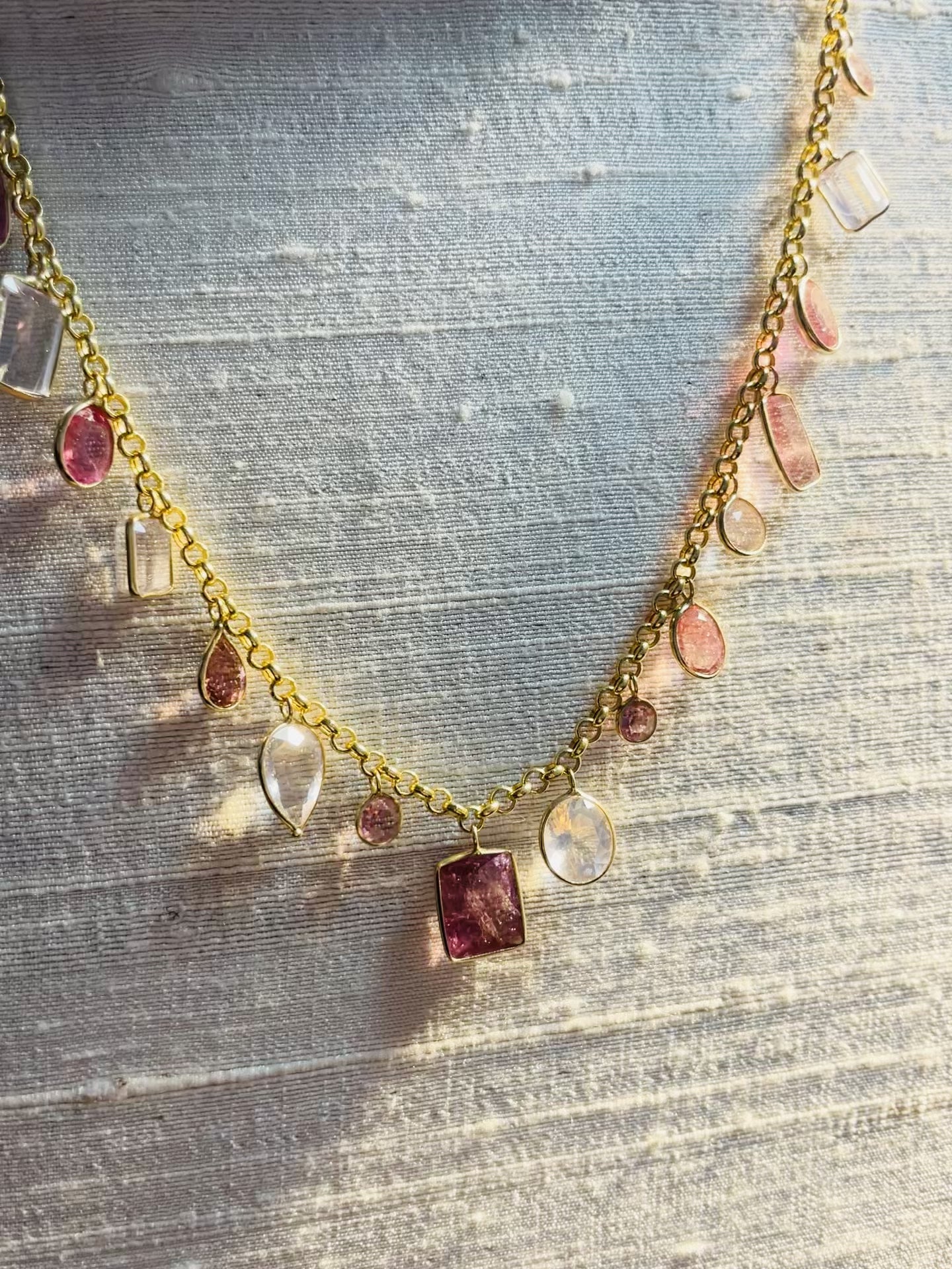 Natural Pink Sapphire 14K White Gold Tennis Necklace 4.8CTW