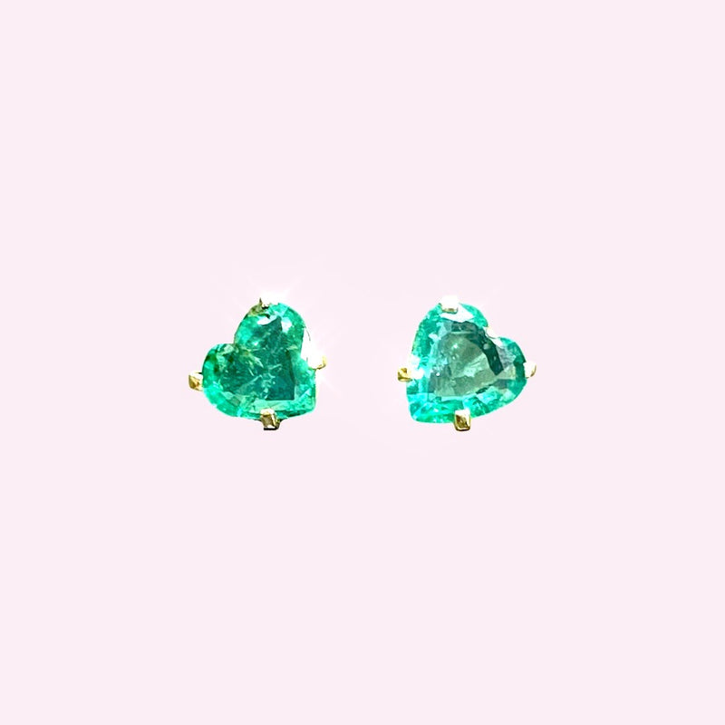 1.19CT Emerald Heart 14K Yellow Gold Stud Earrings