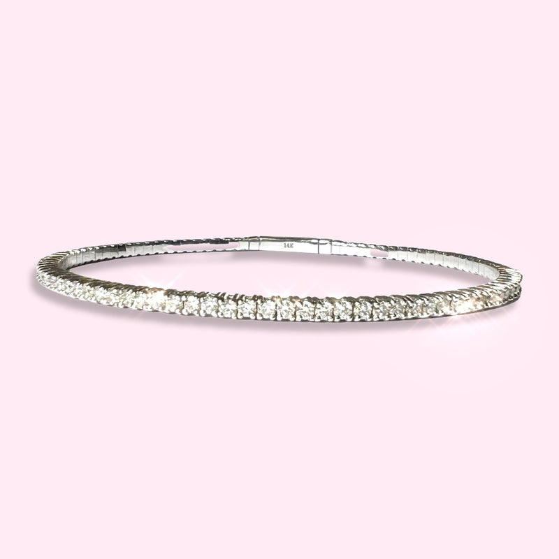 1.84CTW 14K White Gold Natural Diamond Flexible Bangle Bracelet