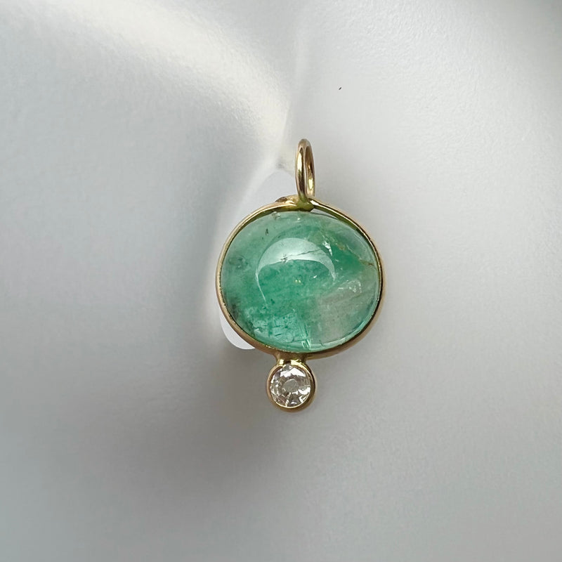 3CT Colombian Cabochon Emerald & Diamond 14K Yellow Gold Pendant Charm 17x10.5mm Sale price$518.49