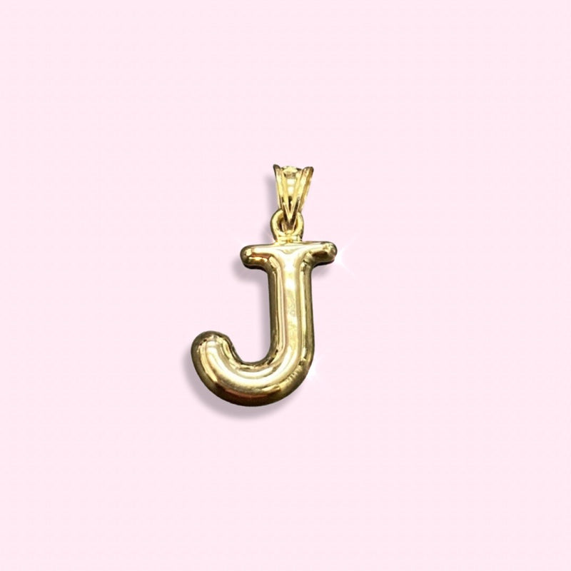 Initial J Puffy Balloon Letter 10K Yellow Gold Pendant