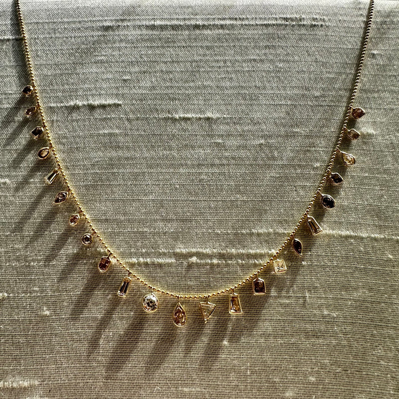 14K 16" Yellow Gold Pink And White Diamond Dangle Necklace