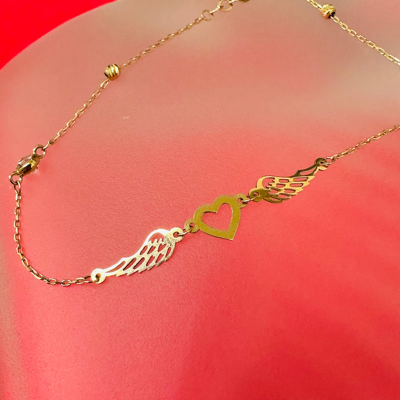 14K Thin Heart With Wings Bracelet