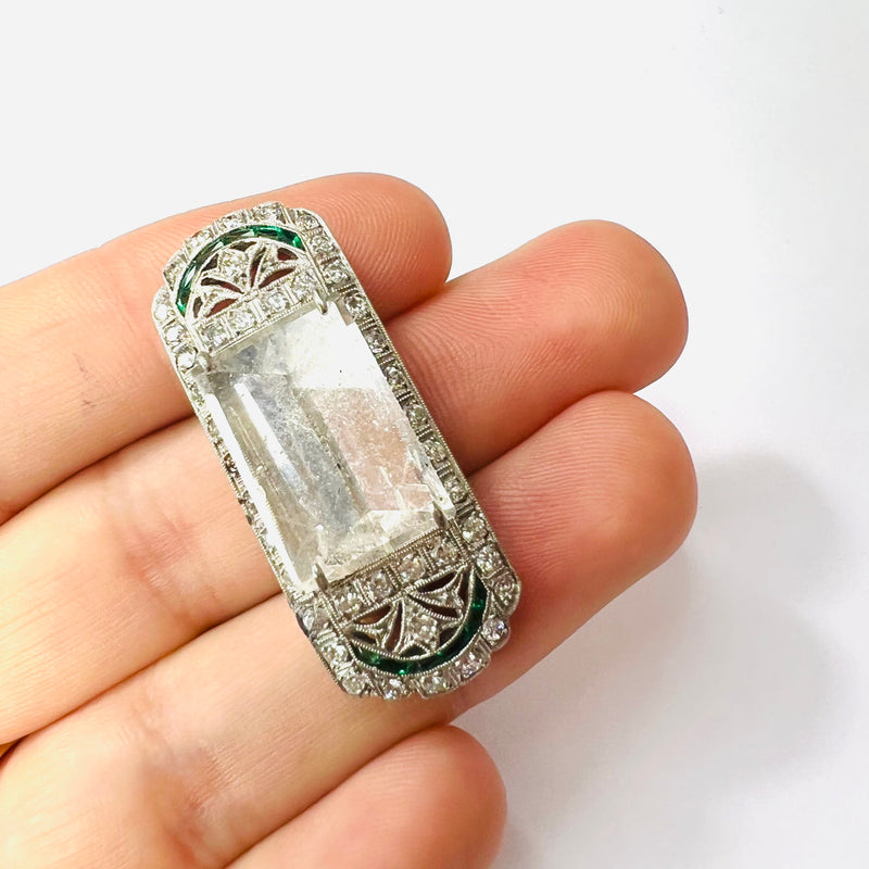 Art Deco Watch Face Convert Morganite Emerald Diamond Platinum Pendant 1.5"