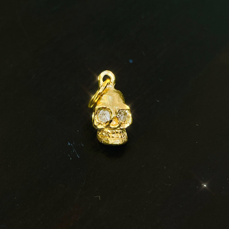 18K Yellow Gold Natural Diamond Eye Skull Charm Pendant