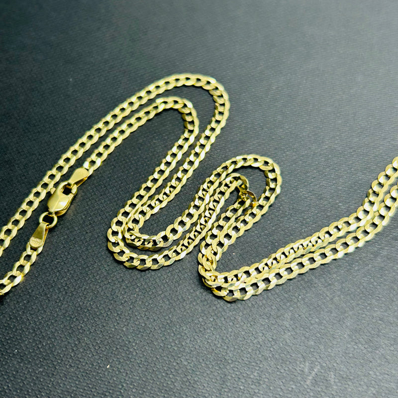 14K Solid Yellow Gold Curb Link 3.1mm Chain 16" 18" 20" 22” 24”