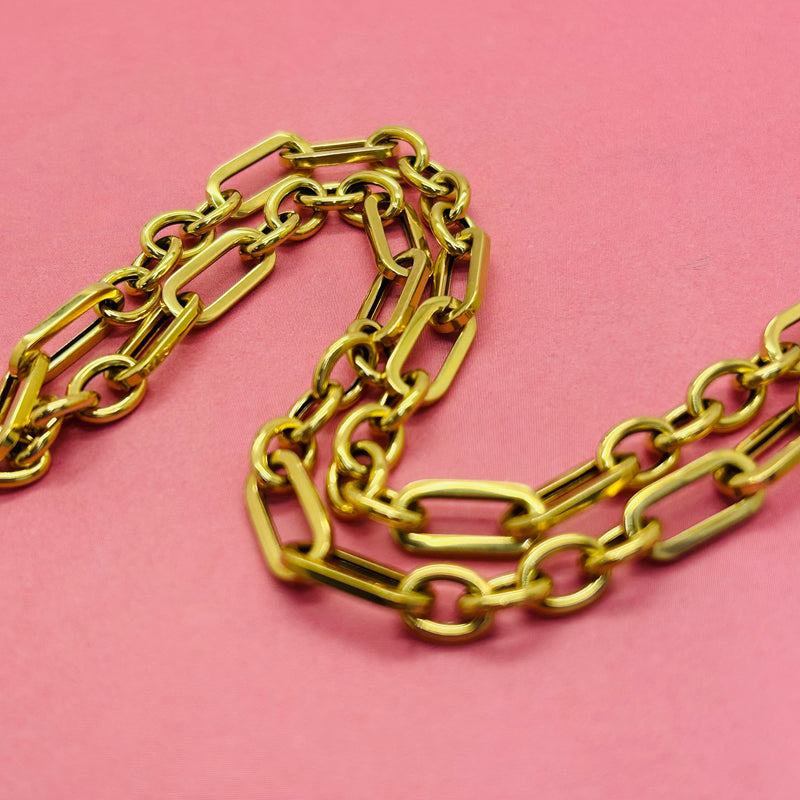 14K Solid Yellow Inter Link Necklace Chain 18”