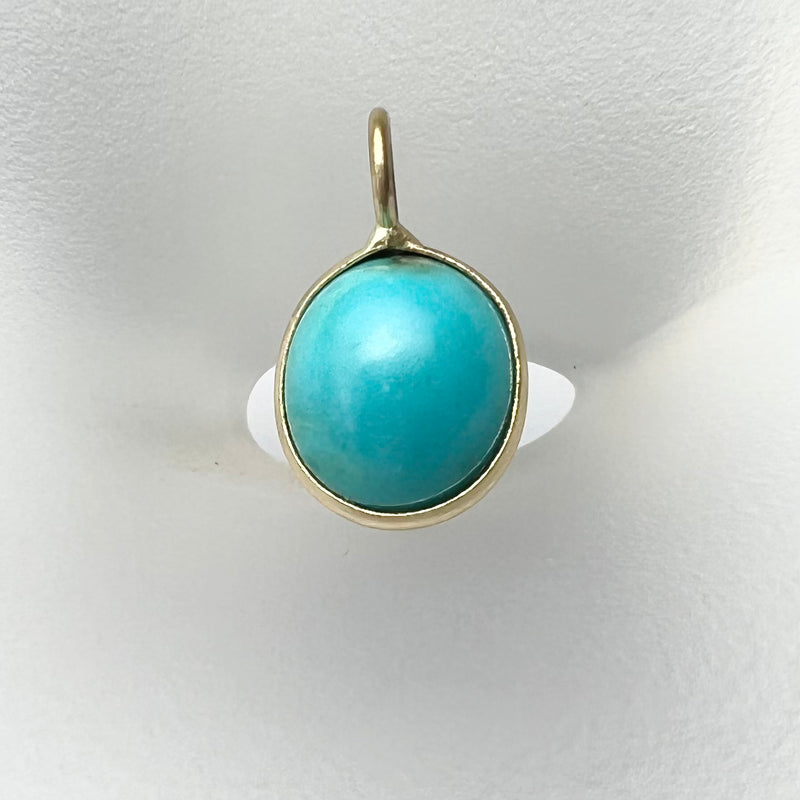 14k Turquoise Yellow Gold Pendant Charm 13x8mm