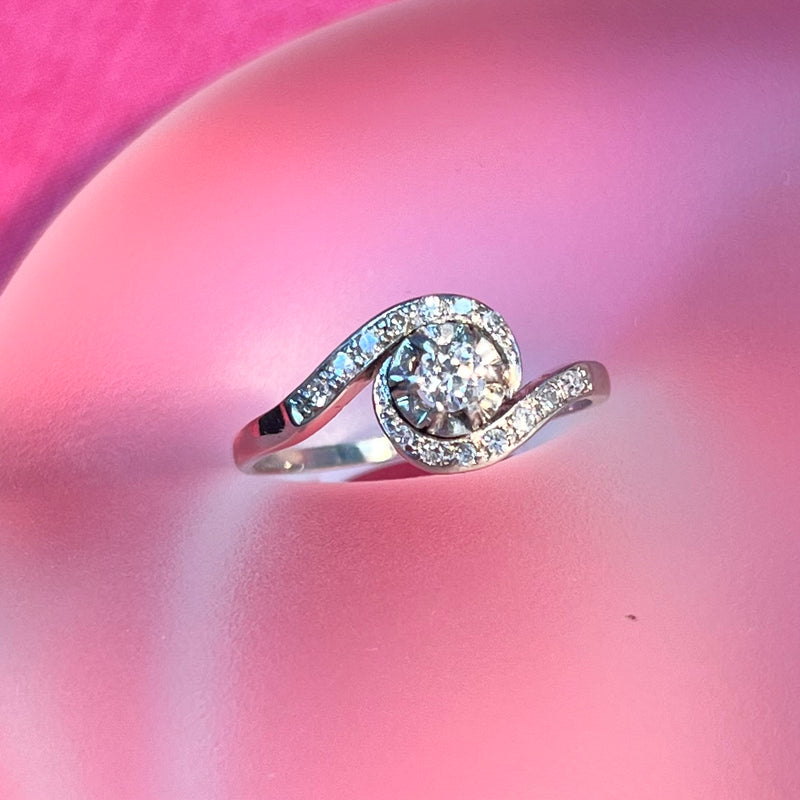 Stunning Antique Edwardian Swirl Platinum and Diamond Ring Size 8.5
