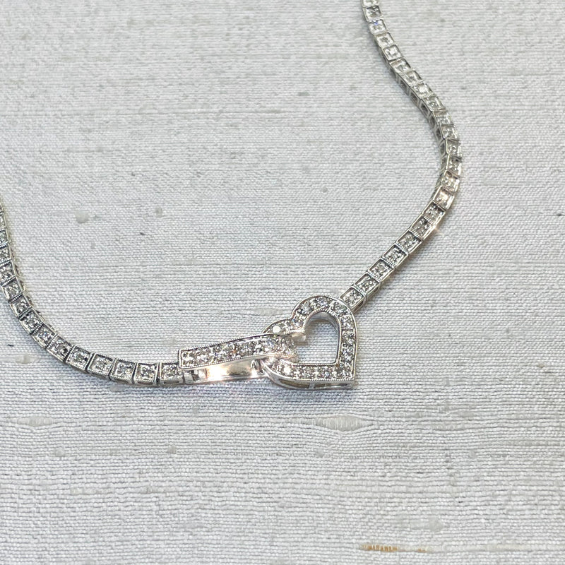14K White Gold Natural Diamond Tennis Necklace with Heart Center