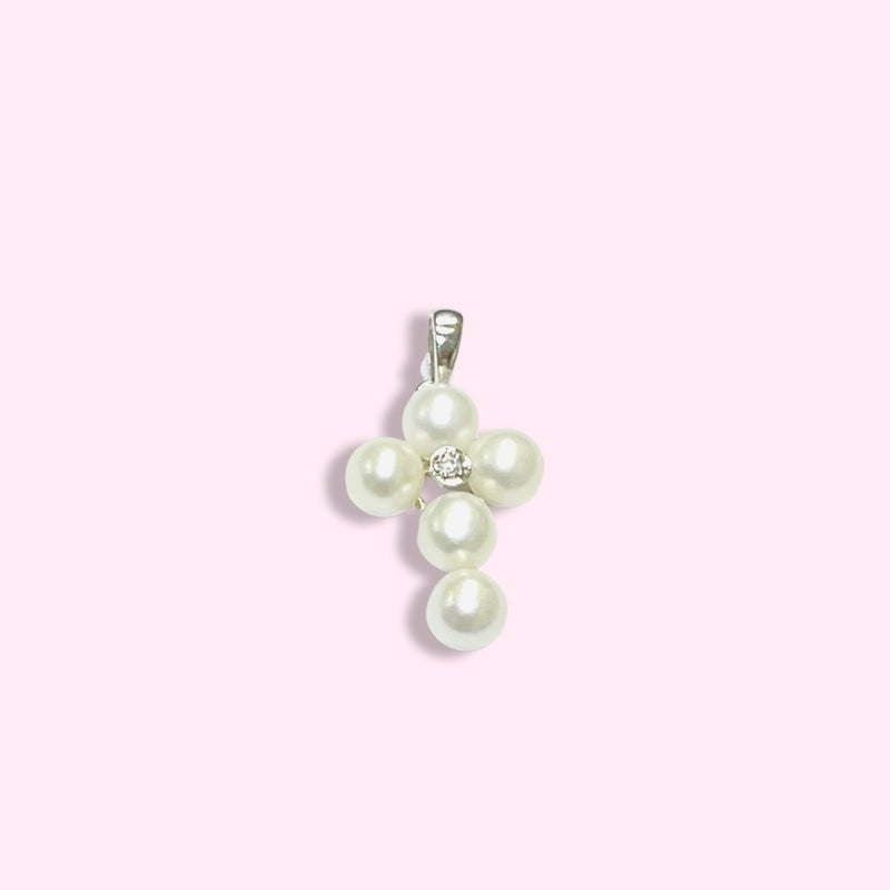 14K White Gold Pearl and Diamond Cross Pendant Charm