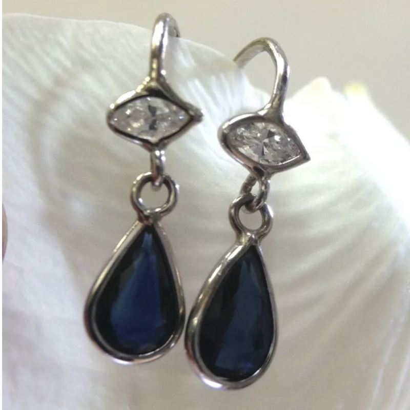 14K White Gold Sapphire and Diamond Drop Earrings Sale price$688.70
