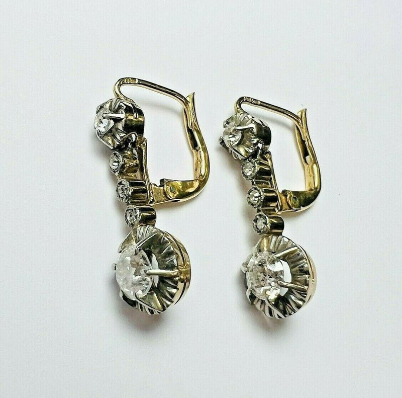 14K Yellow and White Gold Diamond Dangle Drop Lever Back Earring 1" Sale price$2,700.81