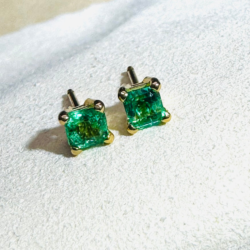14K Yellow Gold Colombian Emerald Stud Earrings 4x4mm Sale price$490.41