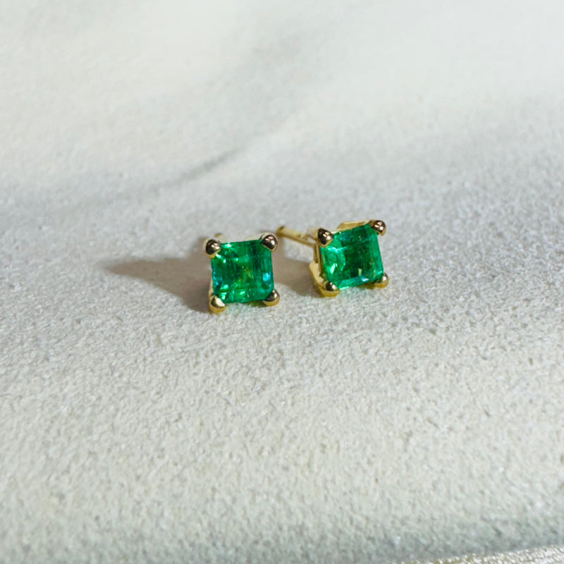 14K Yellow Gold Colombian Emerald Stud Earrings 4x4mm
