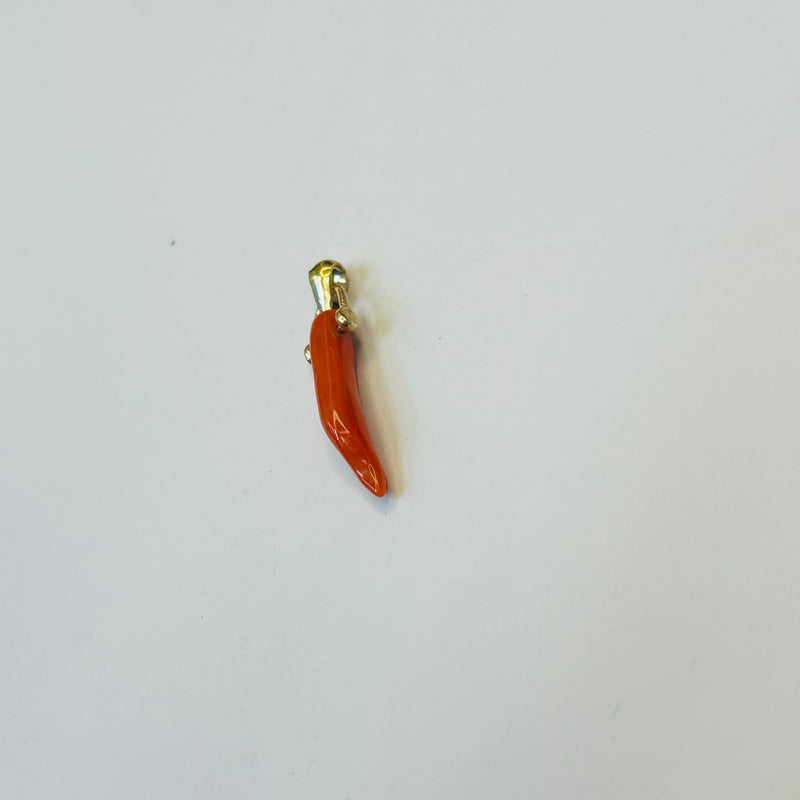 14k Yellow Gold Coral Italian Horn Pendant Charm