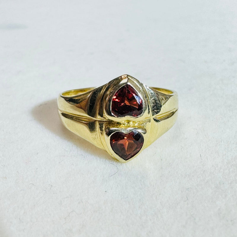 14k Yellow Gold Double Garnet Heart Ring Size 6.25