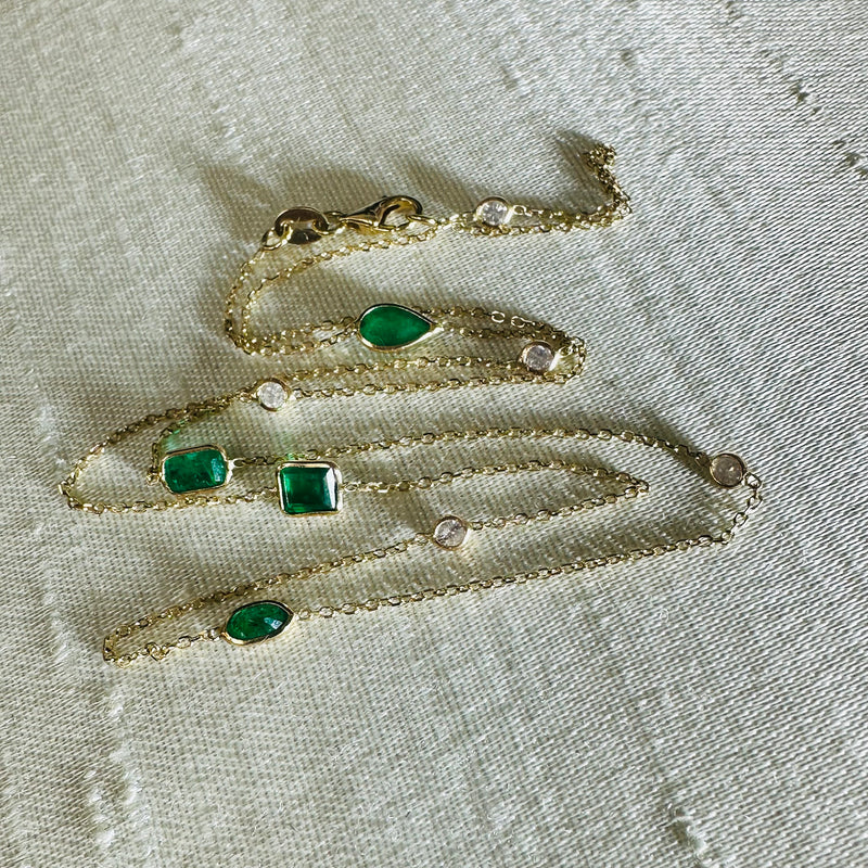 Indulge in our exquisite 14K Yellow Gold Emerald And Diamond Necklace, measuring 18" long and weighing 1.7g. This luxurious piece exudes elegance and sophistication, with its gleaming gold, vibrant emerald, and dazzling diamonds. Elevate your style with this exclusive treasure.