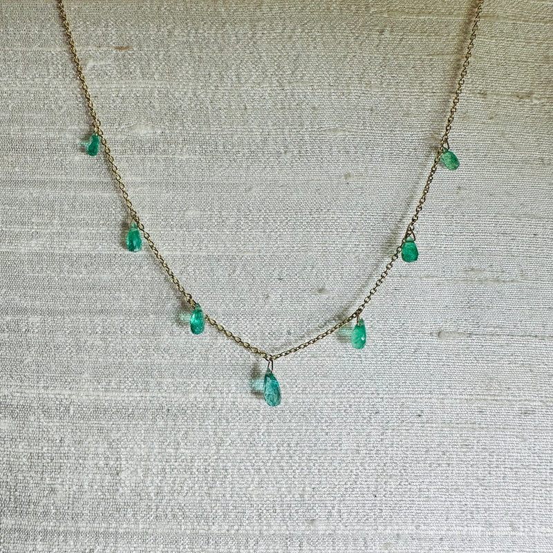 14K Yellow Gold Emerald Dangling Necklace 16" to 18"