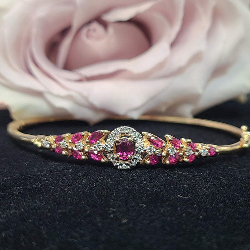 14K Yellow Gold Natural Ruby & Diamond Cuff Bangle