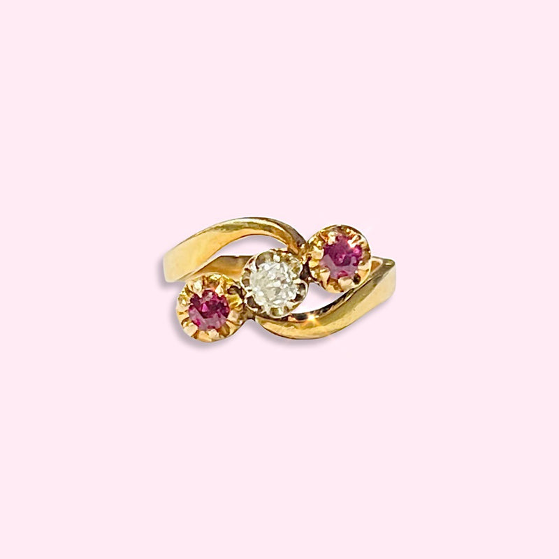 14K Yellow Gold Ring with Rubies and a Diamond Size 6 Sale price$873.97