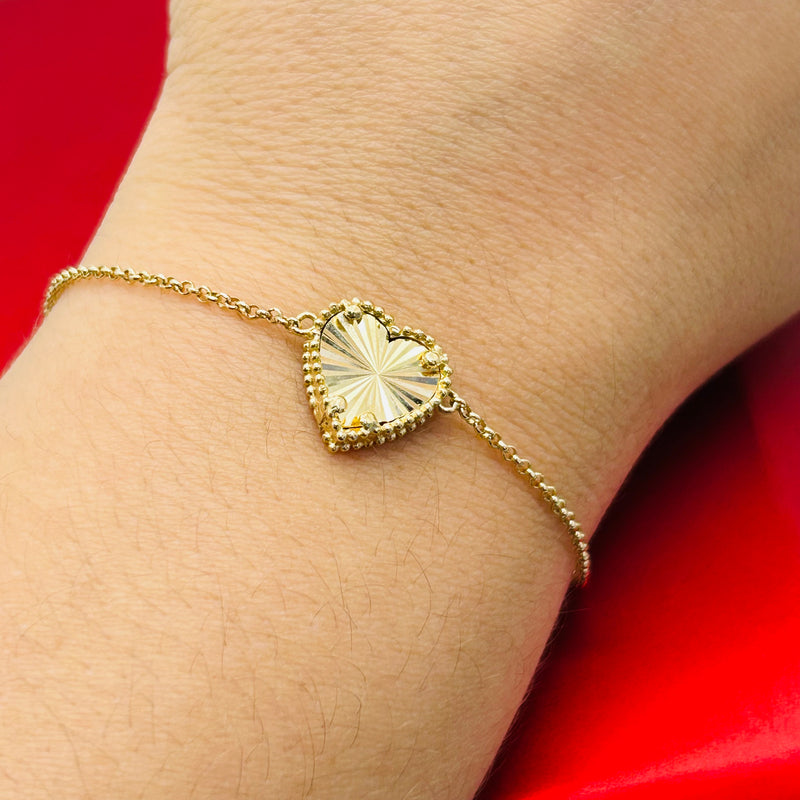 14K Yellow Gold Solid Rolo Chain Bracelet With Heart in The Middle 7”