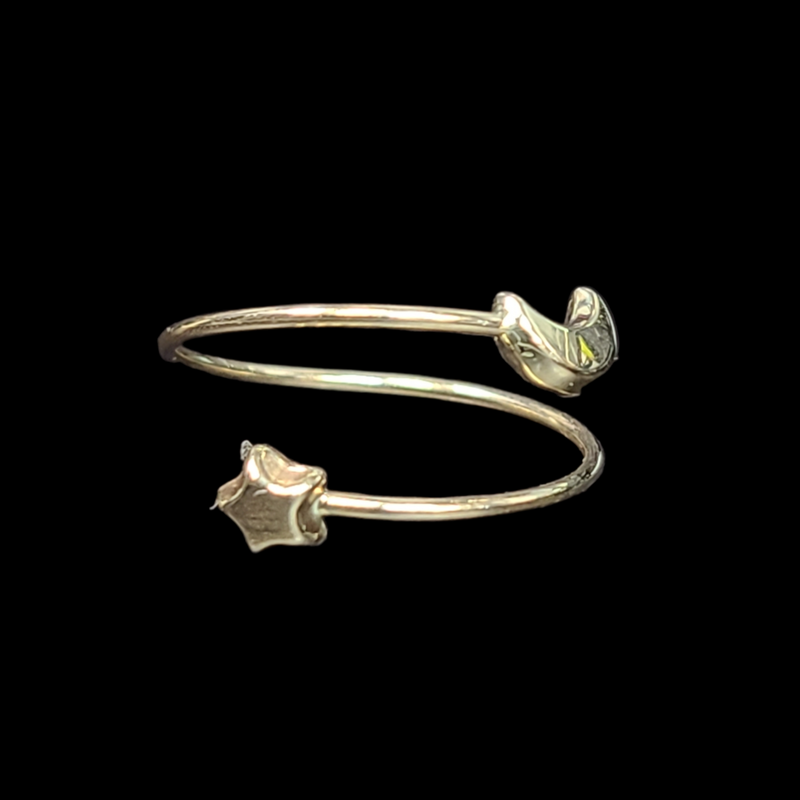 14K Yellow Gold Star Moon Spiral Adjustable Ring