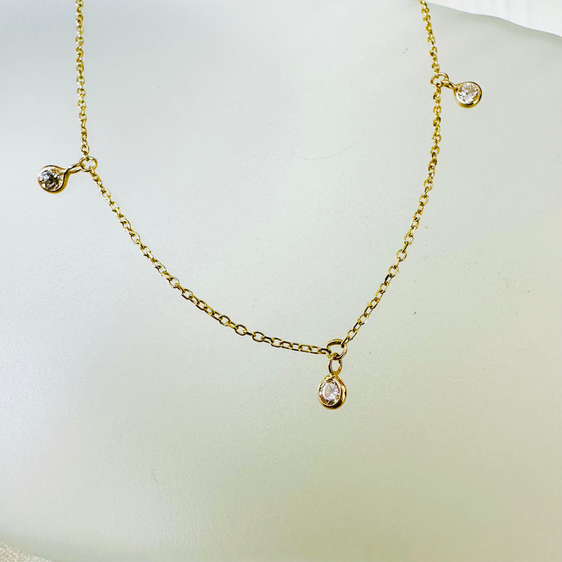 14K Yellow Gold Three Diamonds Necklace 16" to 17"
