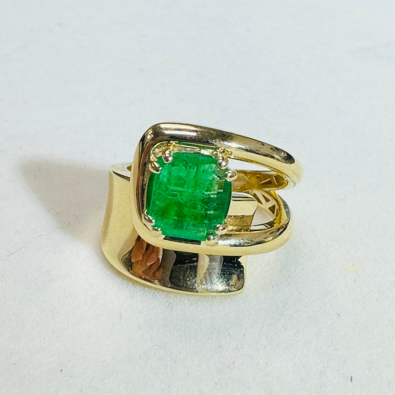 14k Yellow Gold Wide Emerald Wrap Ring Size 7.25