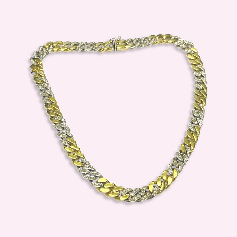 16" 10mm Solid 18K Yellow and White Two Tone Diamond Pave Cuban Curb Link Neckla