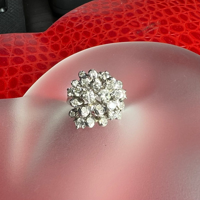 Sparkling Diamond Burst Ring Solid 18K White Gold and Diamond Size 6.25