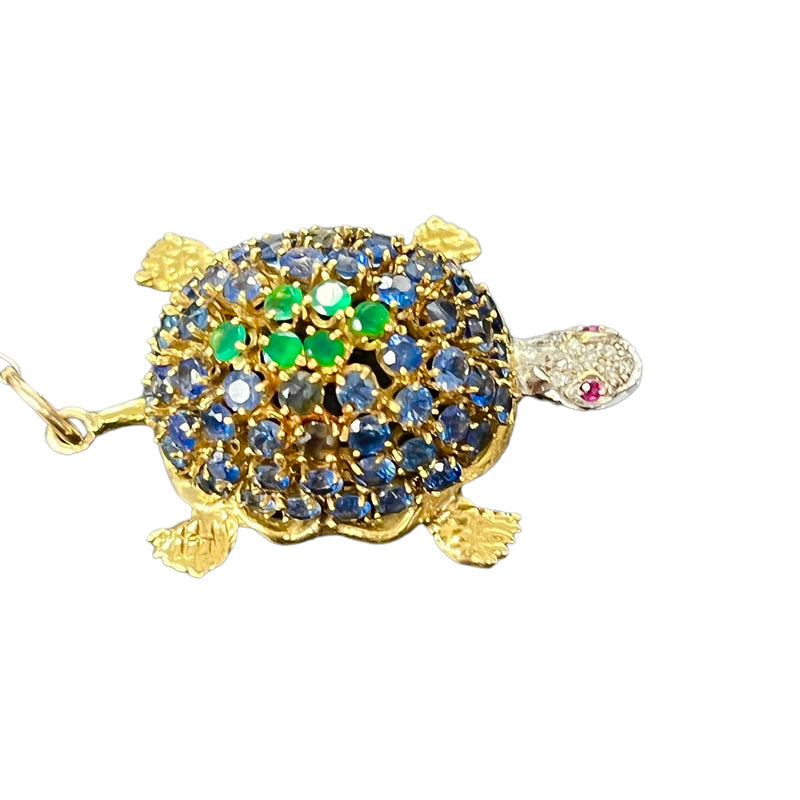 18K Turtle Pendant Charm with Sapphire, Ruby,Emerald