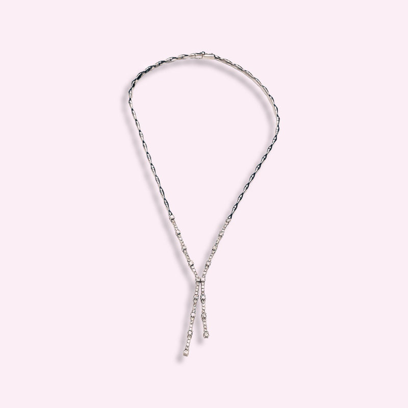 18K White Gold VS Diamond Tennis Lariat Necklace