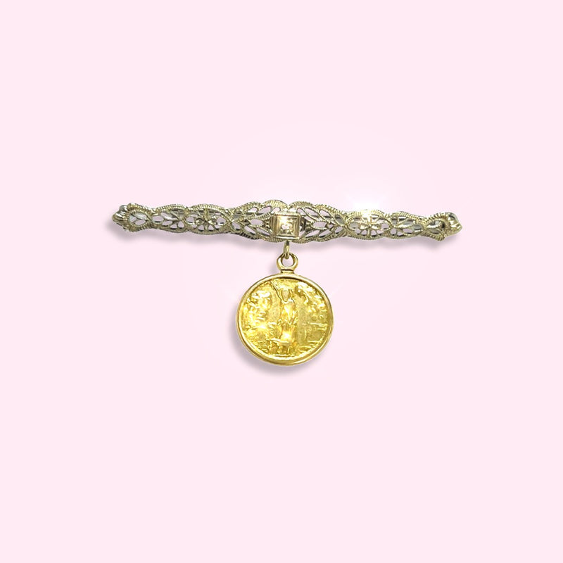 18K Yellow Gold Saint and 10K White Gold Art Deco Diamond Pin Pendant