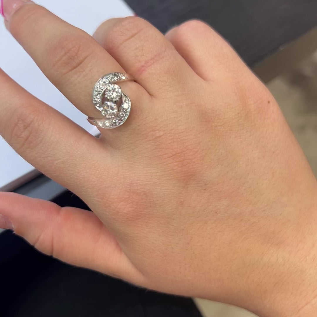 18K Toi et Moi Kissing Diamond Antique Ring Size 8.5 Sale price$2,483.75
