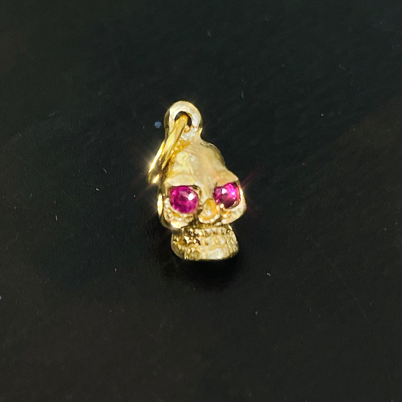 18K Yellow Gold Natural Ruby Eye Skull Charm Pendant