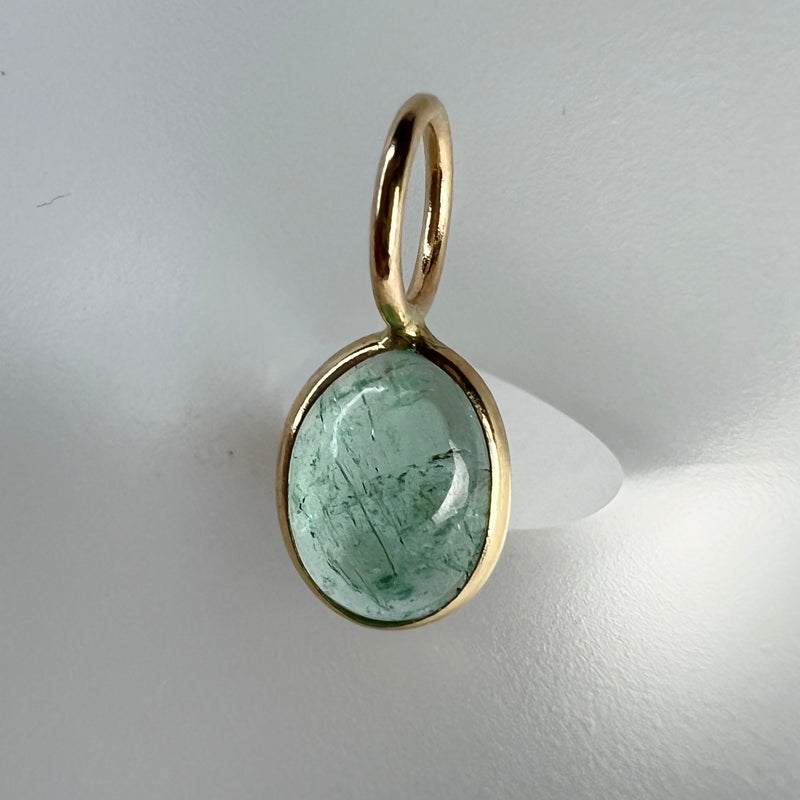1.1CT Colombian Oval Cabochon Emerald 14K Yellow Gold Pendant Charm 14x6.5mm