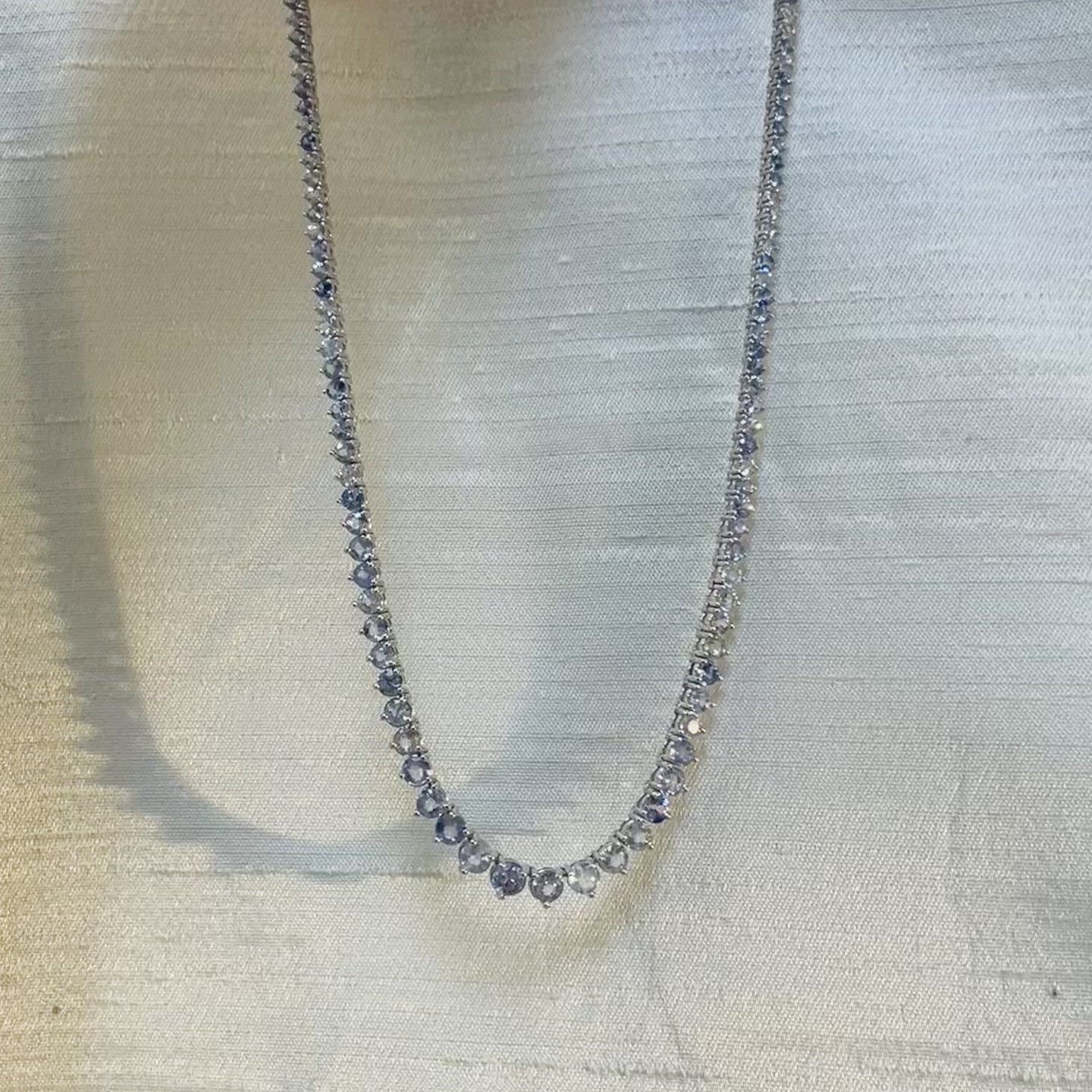 20.3CT Natural Sapphire Riviera Tennis Necklace 14K White Gold 18”