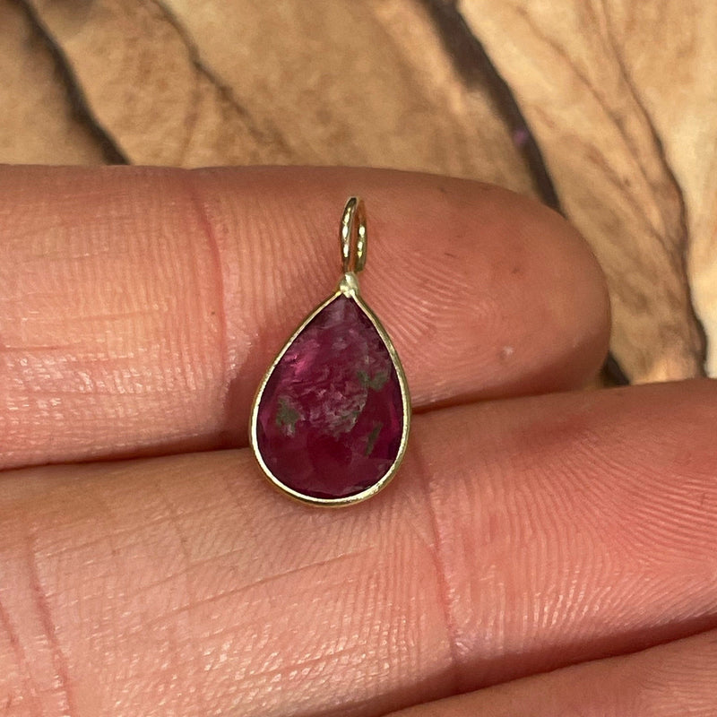 Tourmaline Pear Shape in Solid 14K Yellow Gold Pendant Charm