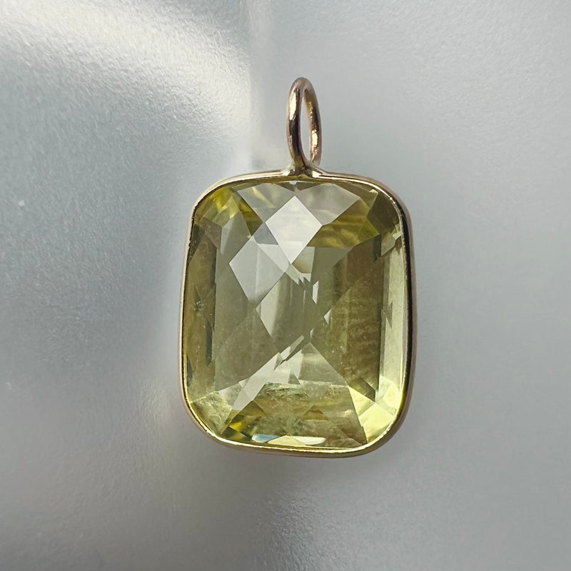 5CT Natural Limey Cushion Cut Citrine 14K Yellow Gold Pendant Charm 17x10.5mm