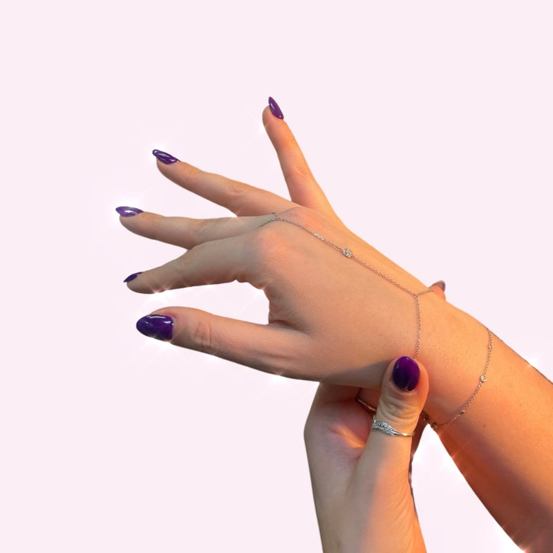.35CT Old Mine Cut Diamond 14K White Gold Diamond Solitaire Hand Chain Bracelet Sale price$1,200.48