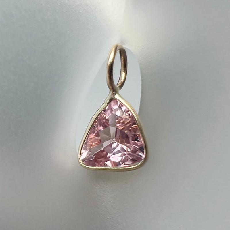 .80Ct Natural Trillion Cut Pink Sapphire 14K Yellow Gold Pendant Charm 11.5x6mm