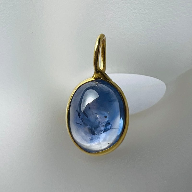 Natural Cabochon Sapphire 14K Yellow Gold Pendant Charm 16x8mm Sale price$355.22