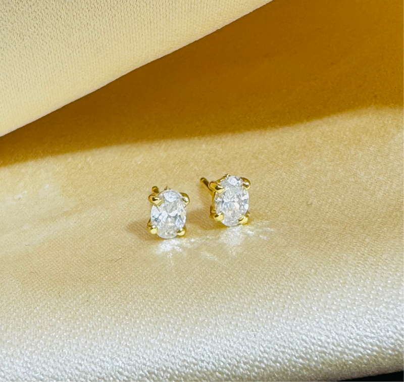 .44CT Natural Oval Diamond Stud Earrings in 14K Yellow Gold